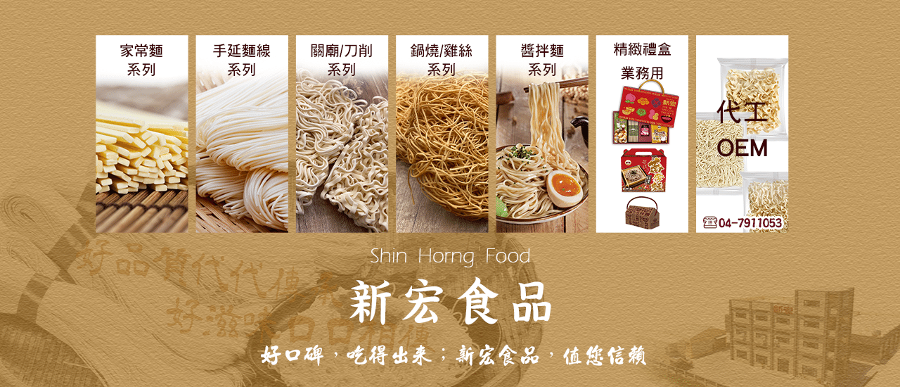 您日常麵食的好夥伴:新宏品質,值您信賴;好口碑,吃得出來。